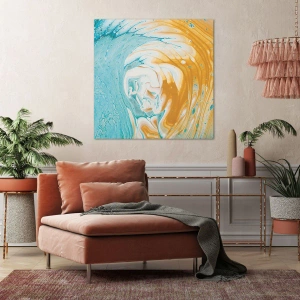 Lägg till en touch av modern stil och harmoni i din interiör med denna unika komposition. Kombinationen av djärva färger och ett dynamiskt mönster gör detta tryck till ett idealiskt dekorativt element som kommer att förhöja karaktären i vilket rum som helst.