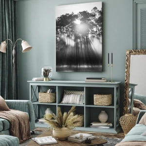 "Ostoppbar sol" är en unik målning på duk som mäter 70x50 cm i horisontellt format, som avbildar ett svartvitt fotografi av en skog i morgondimma. Nyansernas subtilitet och ljusets spel ger målningen en unik atmosfär som lockar ögat och introducerar en atmosfär av lugn och harmoni i interiören.