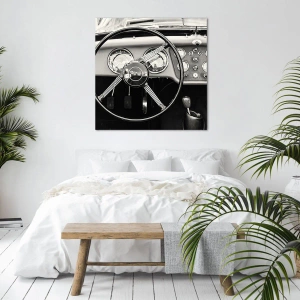 • Bil, vintage, bil, Svart och vitt, Automotive, Vintage och retro, För matsalen, För hallen, För vardagsrummet, För sovrummet, Svart, grått, silver, svart och vitt, Kvadratisk