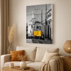 Lisbons anda är en målning på duk som transporterar betraktaren till Lissabons atmosfäriska gator. Den distinkta gula spårvagnen, omgiven av stadens monokromatiska bakgrund, skapar en unik komposition som kombinerar modernitet och tradition. Målningen introducerar en atmosfär av elegans och nostalgi i interiören, samtidigt som den inspirerar med sin konstnärliga form.