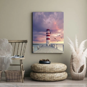 Dags att gå till hamnen är en canvastavla som transporterar betraktaren till det pittoreska landskapet av en solnedgång vid havet. Fyren i slutet av en träpir skapar en fridfull och romantisk atmosfär där naturen kombineras med subtil elegans. Målningen gläds med sin färgharmoni och sitt konstnärliga uttryck, vilket ger lugn och inspiration till interiören.