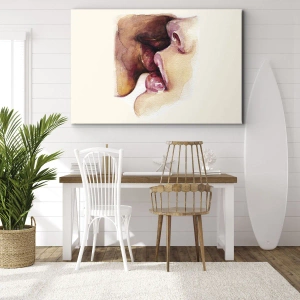 Duken är uppspänd i ramen. Sidor och kanter är täckta med tryck och skapar en fortsättning av bilden. Bilden är klar att hängas på väggen. Varje produkt har en ögla som är fastsatt i ramen samt en monteringssats (skruv + plugg).