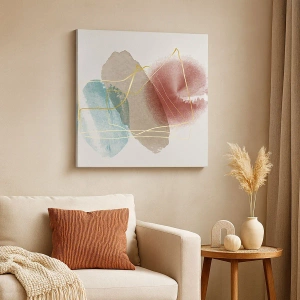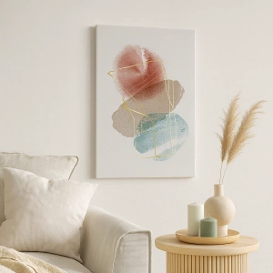 Pastellfärger i kombination med subtila gyllene linjer ger lugn och värme till interiören. Målningen är perfekt för minimalistiska, moderna utrymmen och för de som värdesätter subtila konstnärliga accenter. Detta verk är perfekt för vardagsrum, sovrum och kontor och ger dem harmoni och stil.