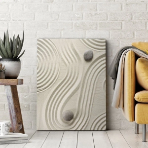- Denna målning föreställer ett minimalistiskt zenmönster med sand och stenar. En väggdekoration som ger harmoni och avkoppling till alla interiörer.