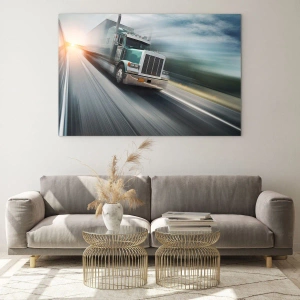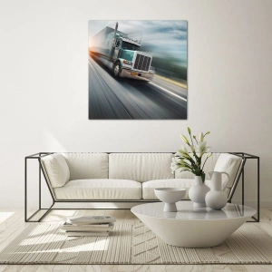Glastavla - Bild på glas - Amerikanska jätten i full fart - 30x30 cm