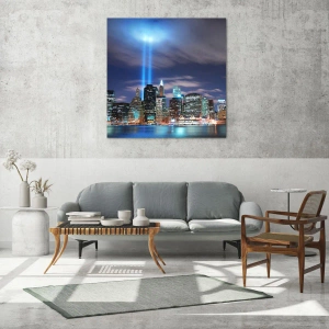 Glastavla - Bild på glas - Nå himlen med ljuset - 30x30 cm