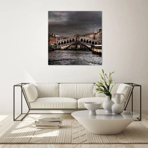 Glastavla - Bild på glas - Rialtobron mot en molnig himmel - 70x50cm - Ett löfte om en kväll i Venedig - Modern väggdekoration för vardagsrum och sovrum ARTTOR