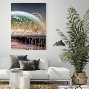 Solnedgång över planeten och havet är ett utmärkt val för dem som vill införliva element av naturen och kosmisk estetik i sin interiör. Dess detaljerade komposition och intensiva färger gör den till en blickfångare i alla rum, drar till sig ögat och skapar en unik atmosfär.