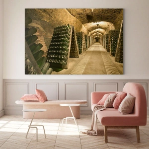 Glastavla - Bild på glas - En källare med vinflaskor som åldras i rader - 70x50cm - Smakens uppståndelse - Modern väggdekoration för vardagsrum och sovrum ARTTOR