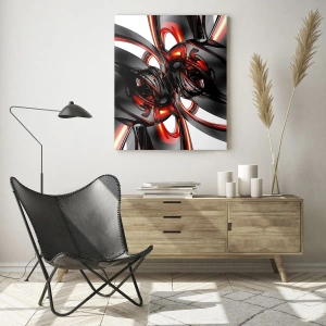 Glastavla - Bild på glas - Rörelse i grafit och röd - 50x70 cm