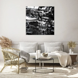 Glastavla - Bild på glas - Detaljer av en metallmotor på svart bakgrund - 70x50cm - Stål, vacker, stark - Modern väggdekoration för vardagsrum och sovrum ARTTOR