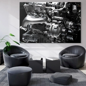 Motorn, en symbol för precision, styrka och teknologi, är ett perfekt dekorativt motiv för älskare av mekanik och ingenjörskonst. "Stål, vackert, starkt" är inte bara en bild, utan också ett uttryck för fascination för teknikens värld och modern design.