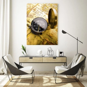 Karta- och kompassmotivet symboliserar resor, äventyr och reflektion över världen och dess mångfald. Denna bild ger harmoni, inspiration och en unik atmosfär till interiören, drar till sig ögat och uppmuntrar till eftertanke över att upptäcka nya horisonter.