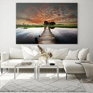 Bild på glas är tillverkad på 4mm tjockt glas. Glaskanterna har en trapetsformad matt fas. Bilden är säker i användning och klar att hängas upp - har metallöglor fastsatta på bildens baksida samt distanser av skum som säkerställer ett jämnt avstånd mellan bilden och väggen.