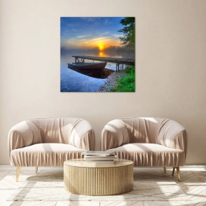 Bild på glas är tillverkad på 4mm tjockt glas. Glaskanterna har en trapetsformad matt fas. Bilden är säker i användning och klar att hängas upp - har metallöglor fastsatta på bildens baksida samt distanser av skum som säkerställer ett jämnt avstånd mellan bilden och väggen.