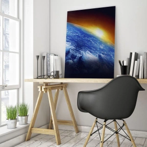 Glastavla - Bild på glas - Soluppgång över den blåa planeten - 50x70 cm