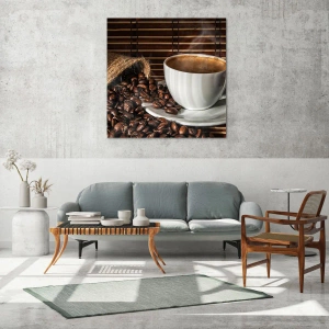 Glastavla - Bild på glas - Kolets svärta, bärnstenens transparens - 90x30 cm