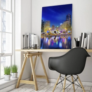 Glastavla - Bild på glas - Metropolens regnbågsnatt - 80x120 cm