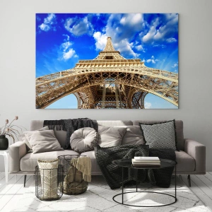 Eiffeltornet, en symbol för Paris och hela Frankrike, gläds med sin invecklade konstruktion och arkitektoniska hantverk. Perspektivet underifrån låter dig se detaljerna i metallelementen och deras perfekta arrangemang, vilket gör denna målning till en unik dekorativ accent i alla interiörer.