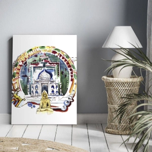 - Målningen har en akvarell illustration inspirerad av indisk arkitektur och kultur, med Taj Mahal som dominerande motiv. Perfekt för exotiska, inspirerande interiörer.
