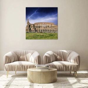Glastavla - Bild på glas - Colosseum i Rom under ett åskväder - 70x50cm - Kamparena - Modern väggdekoration för vardagsrum och sovrum ARTTOR