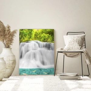 Glastavla - Bild på glas - Skummande kaskad från grönt till azur - 50x70 cm