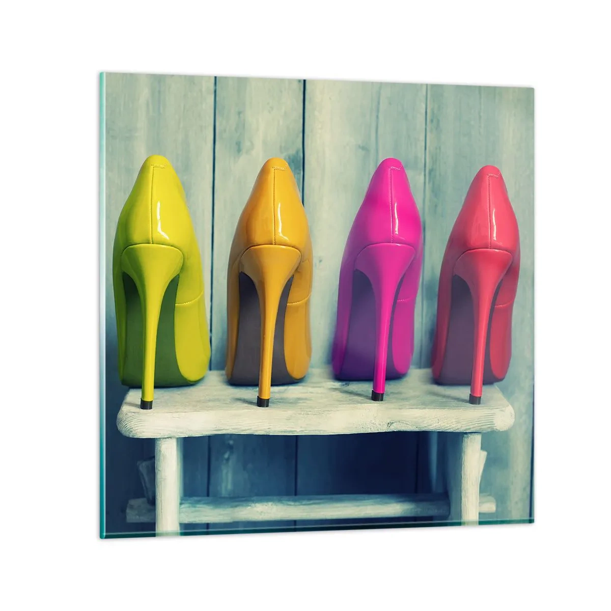 Glastavla - Bild på glas - En promenad på regnbågen - 70x70 cm