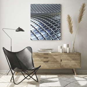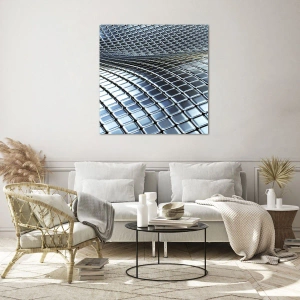 Glastavla - Bild på glas - Metallisk silver våg - 60x60 cm
