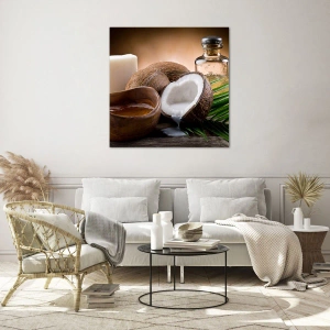Glastavla - Bild på glas - Hälsa från tropiska öar - 70x100 cm