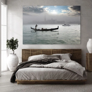 Glastavla - Bild på glas - Sagostad ur vatten och dimma - 70x70 cm