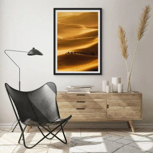 Affisch i svart ram - En karavan av kameler på ökendynerna - 50x70cm - En karavan på öknens vågor - Modern väggdekoration för vardagsrum och sovrum ARTTOR
