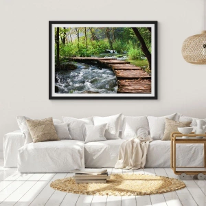 Affisch i svart ram - Över skummande kaskad - 91x61 cm