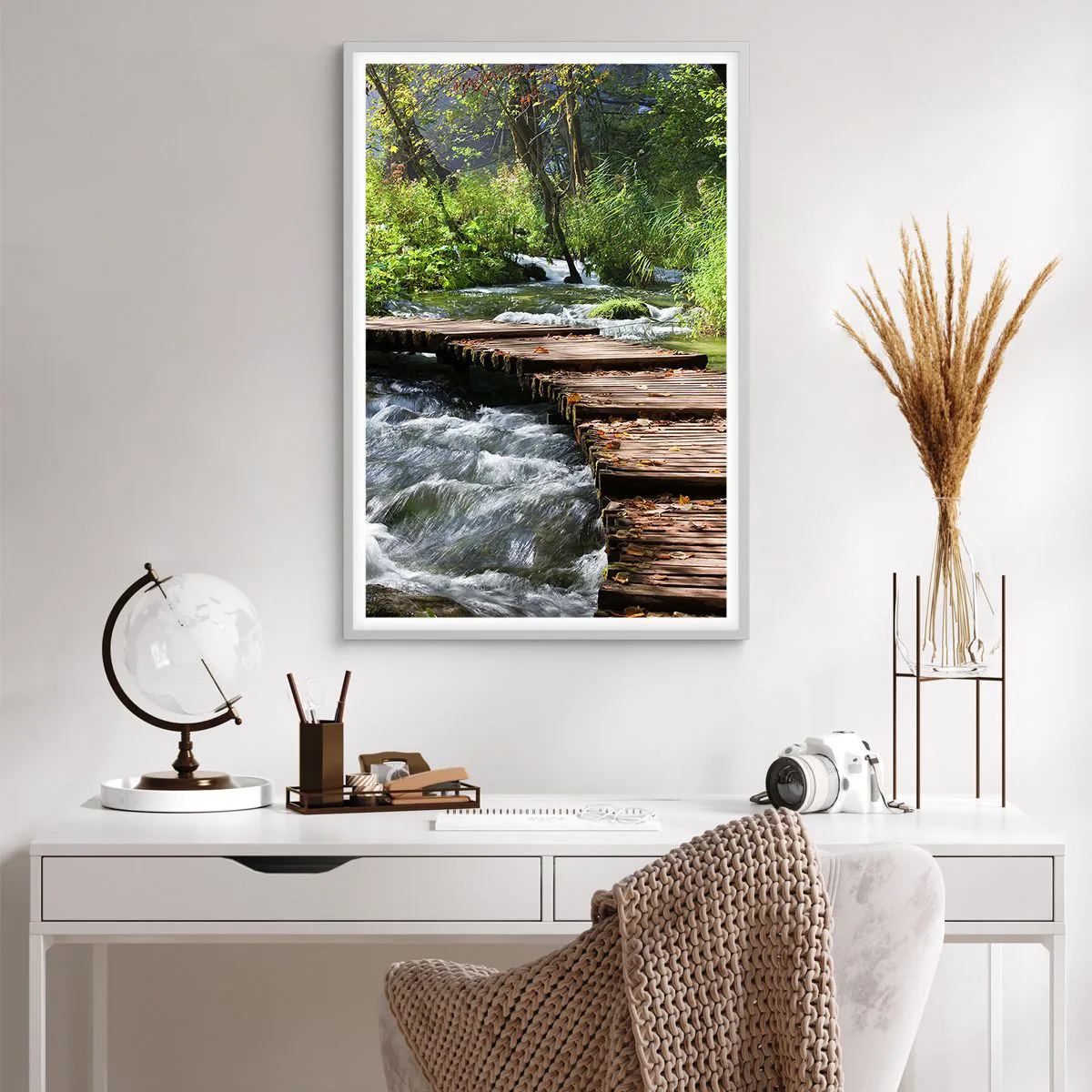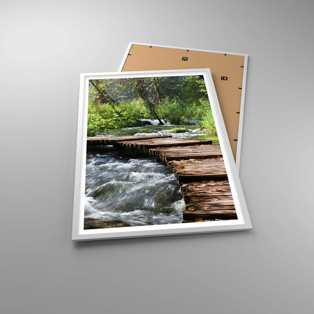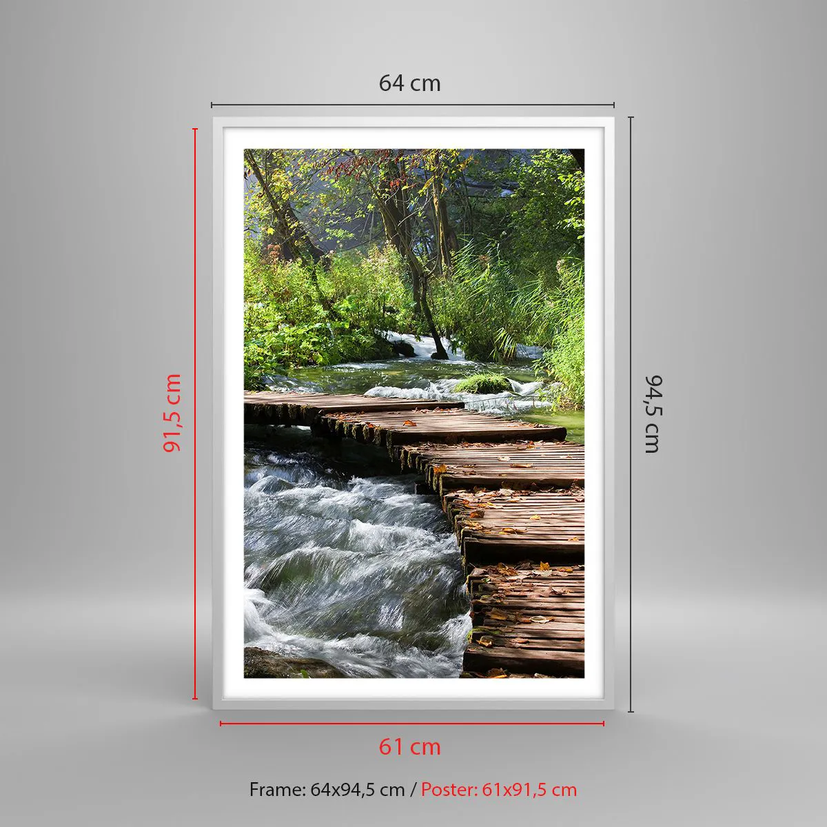 Affisch i vit ram - Över skummande kaskad - 61x91 cm