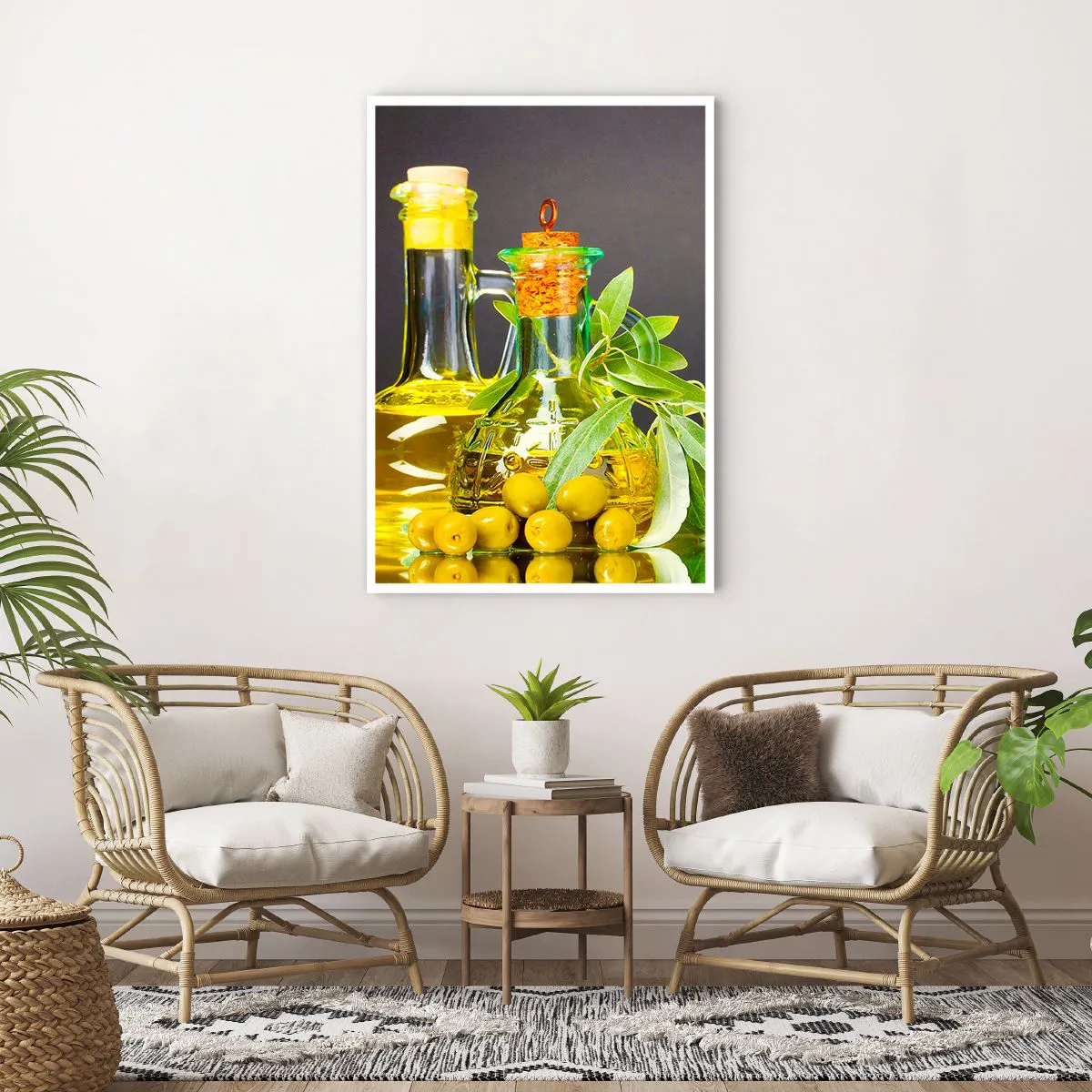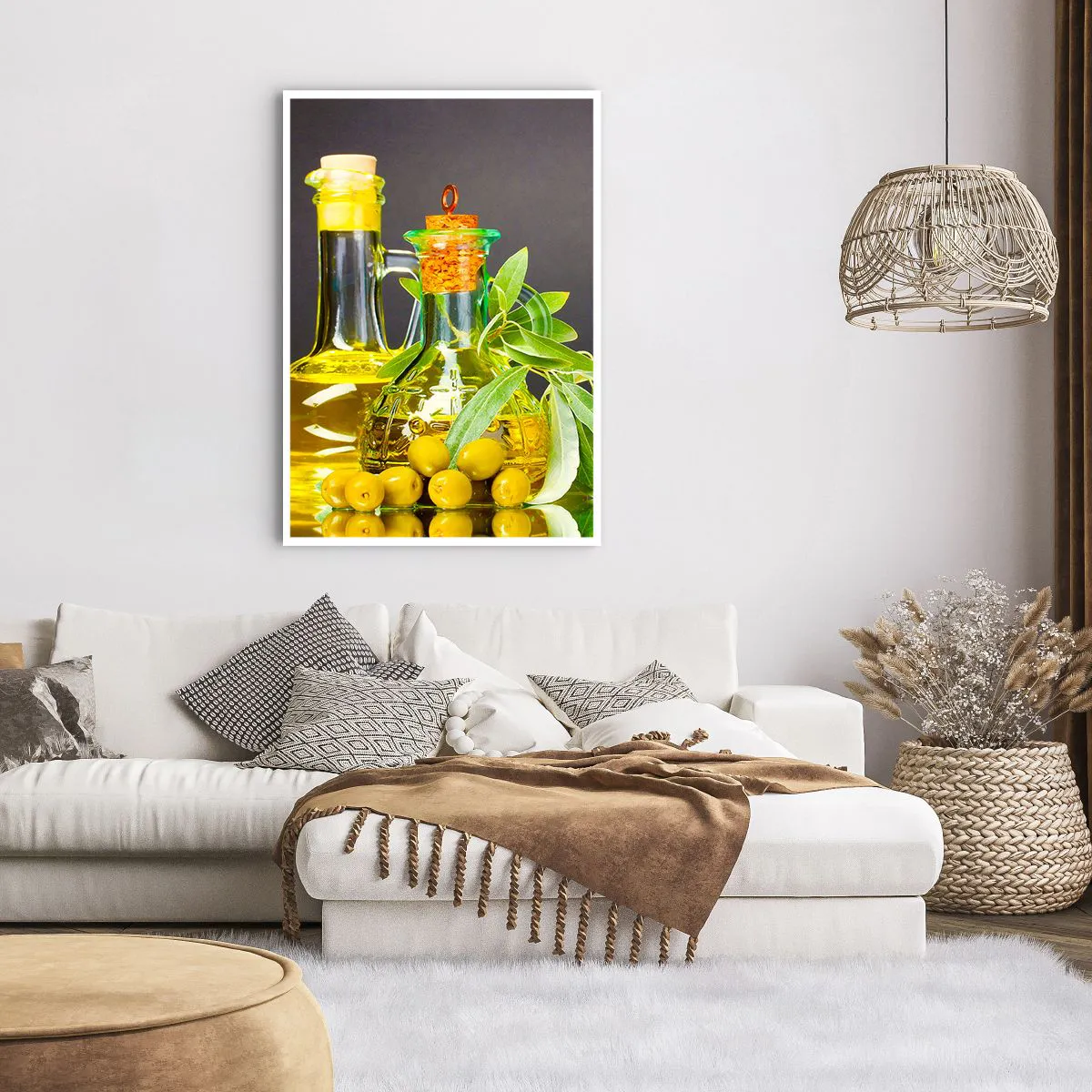 Affisch - Stilleben med oliver och olivolja - 70x100 cm