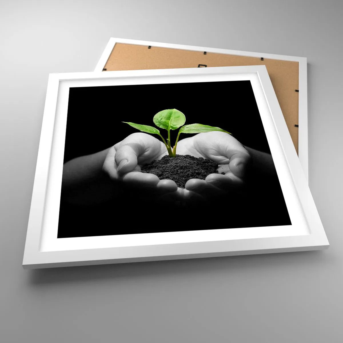 Affisch i vit ram - Jag älskar naturen och skyddar den - 40x40 cm
