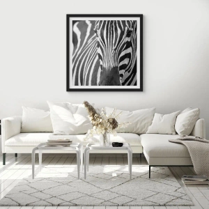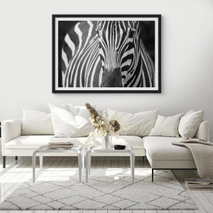 Affisch i svart ram - Porträtt av en zebra i en svartvit komposition - 50x70cm - Världen är svart-vit - Modern väggdekoration för vardagsrum och sovrum ARTTOR