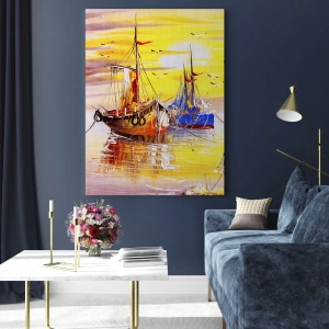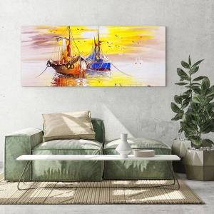 Glastavla - Bild på glas - Välförtjänt vila i hamnen - 100x40 cm