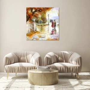 Glastavla - Bild på glas - Ett pars höstpromenad genom en park med färgglada löv - 70x50cm - Romantisk höst i parken - Modern väggdekoration för vardagsrum och sovrum ARTTOR