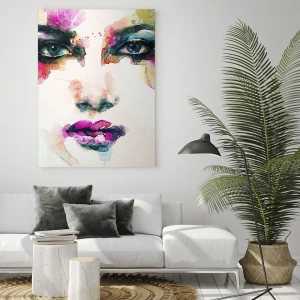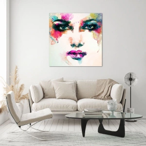 Glastavla - Bild på glas - Porträtt målad med regnbågen - 140x50 cm