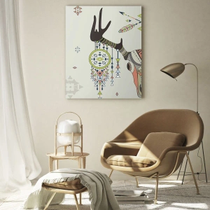 Glastavla - Bild på glas - Symboliska horn och indianmönster på en ljus bakgrund - 70x50cm - Indianjägares trofé - Modern väggdekoration för vardagsrum och sovrum ARTTOR