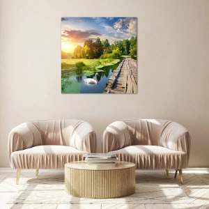 Bild på glas är tillverkad på 4mm tjockt glas. Glaskanterna har en trapetsformad matt fas. Bilden är säker i användning och klar att hängas upp - har metallöglor fastsatta på bildens baksida samt distanser av skum som säkerställer ett jämnt avstånd mellan bilden och väggen.