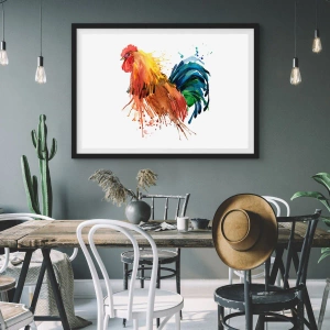 - Denna poster i akvarellstil föreställer en färgglad tupp, full av livfulla färger och en dynamisk karaktär. Perfekt för inredning inspirerad av naturen och konst, den levereras med en svart ram på 50x70 cm.