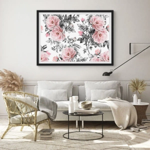 Affisch i svart ram - Tappa sig i rosblommorna - 50x40 cm