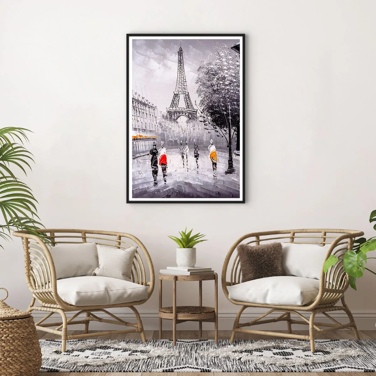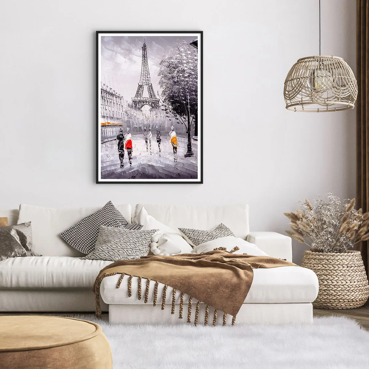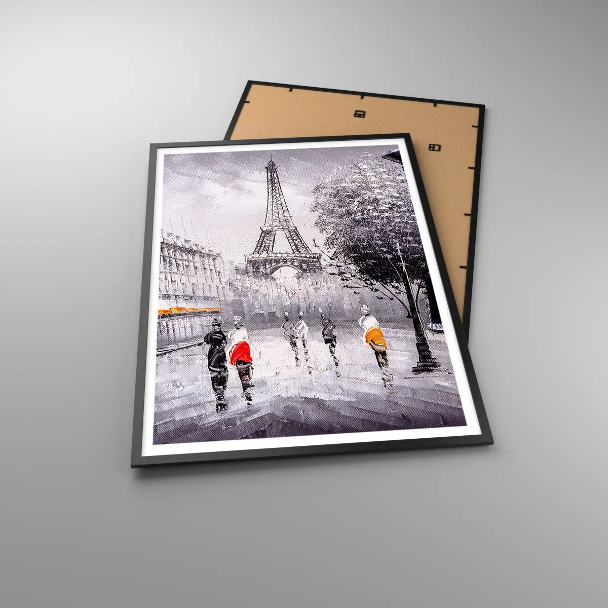 Affisch i svart ram - Promenad i Paris - 70x100 cm