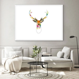 Affisch i vit ram - Hjort badar i färg - 100x70 cm