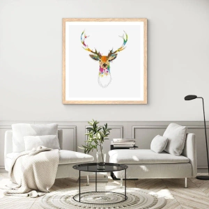 Affisch i ram av ljusek - Hjort badar i färg - 91x61 cm