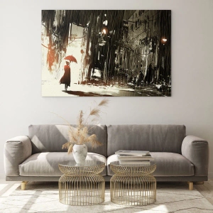 Glastavla - Bild på glas - Röda paraplyets poesi - 100x70 cm
