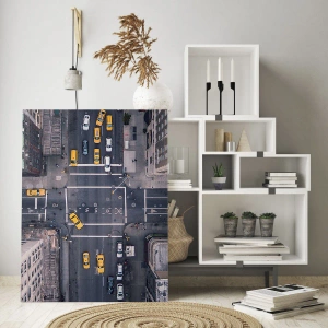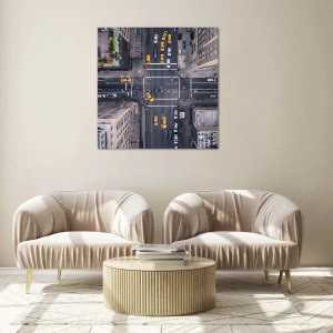 • New York, stad, arkitektur, Arkitektur, städer, fordon, För kontoret, För arbetsrummet, För matsalen, För hallen, För vardagsrummet, För sovrummet, Grå, gul, Kvadratisk