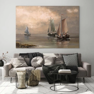 Glastavla - Bild på glas - Seglarnas hemkomst - 160x50 cm