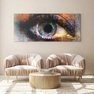 Glastavla - Bild på glas - Ett abstrakt öga i intensiva, flerfärgade nyanser - 70x50cm - Man kan titta in i själen - Modern väggdekoration för vardagsrum och sovrum ARTTOR